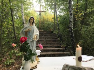 Ültem a kövön a pár négyzetméteres barlangban, és beleremegtem a felismerésbe! Igen, Isten háza, a templomaink pusztává váltak, az Oltáriszentségben köztünk trónoló Krisztus magányosan várja gyermekeit! Sajnos nagyon sok keresztény számára a legfontosabb a papok által mondott szentbeszéd meg az énekkar, a kántor, hogy milyen show műsort tart, és nem a templomot betöltő isteni jelenlét! Mikor a templom üres és nincs benne szertartás, liturgia, a tabernákulumban akkor is ott vár bennünket az Oltáriszentségben a mi Urunk Jézus Krisztus! Igazából, ez a csendes találkozás, ez a párbeszéd az Istennel, képes egyedül megújítani, termékennyé, boldoggá tenni az életünket! Megszóljuk a fiatalokat, kiknek a fülében ott bömböl a fülhallgatón keresztül a zene, de vajon én képes vagyok elcsendesedve, egy – egy órát Istenemre figyelve imádságban eltölteni a lakóhelyemhez legközelebbi templomban, kápolnában?