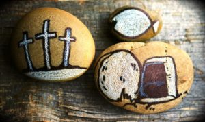 Évikével először mentünk keresztútra. Egyből egy olyan igazi Golgotára Budaörsön. És ő felfogta, átélte, megsiratta Jézus szenvedését és halálát. Fájt neki, hogy a rossz emberek bántották. Fájtak neki a sebei. Saját fülében csengtek a kalapácsok hangjai. Utána olyan üres volt minden! Az a kis Jézus, akit nemrég kis bölcsőn a saját piciny kezeivel helyezett el a Betlehembe most meghalt és nincs. És nem volt se pénteken, se szombaton. És hirtelen minden olyan üres lett. Benne is és bennem is. Én tudtam, hogy köztük van, de Évi nem. Neki meghalt az, aki eddig segítette őt. Nem tudta a pici agyával felfogni a feltámadás ajándékát, mígnem el nem mentünk vele a feltámadásra. Ott már tűkön ült, hogy megláthassa őt. Bár nem tudta megvárni, de vasárnap már azzal kezdte, hogy láttam-e Jézust? Mutattam neki képeket, angyalokat, de talán csak akkor nyugodott meg igazán, amikor a gyermekmisén eljátszották a feltámadást és persze a nyuszi is megjött. Boldog volt, mert mára helyreállt a rend és tudom, a csokik mellett valami más is hozzájárult az öröméhez.